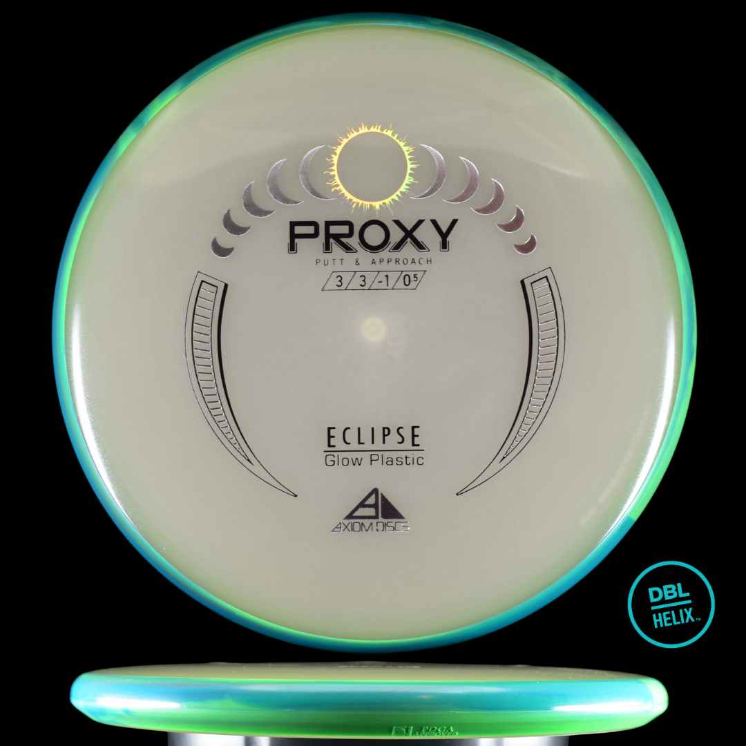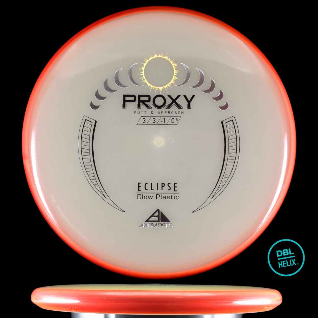 Sharing a core with the Axiom Envy, the Proxy maintains the low-profile feel and solid grip of the Envy, but with a more neutral flight path out of the box. High-speed turn and a forward-fading finish set the Proxy up to be an incredibly versatile disc for shot shaping through wooded holes, around corners, or just laser straight shots