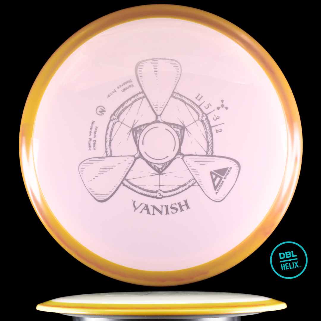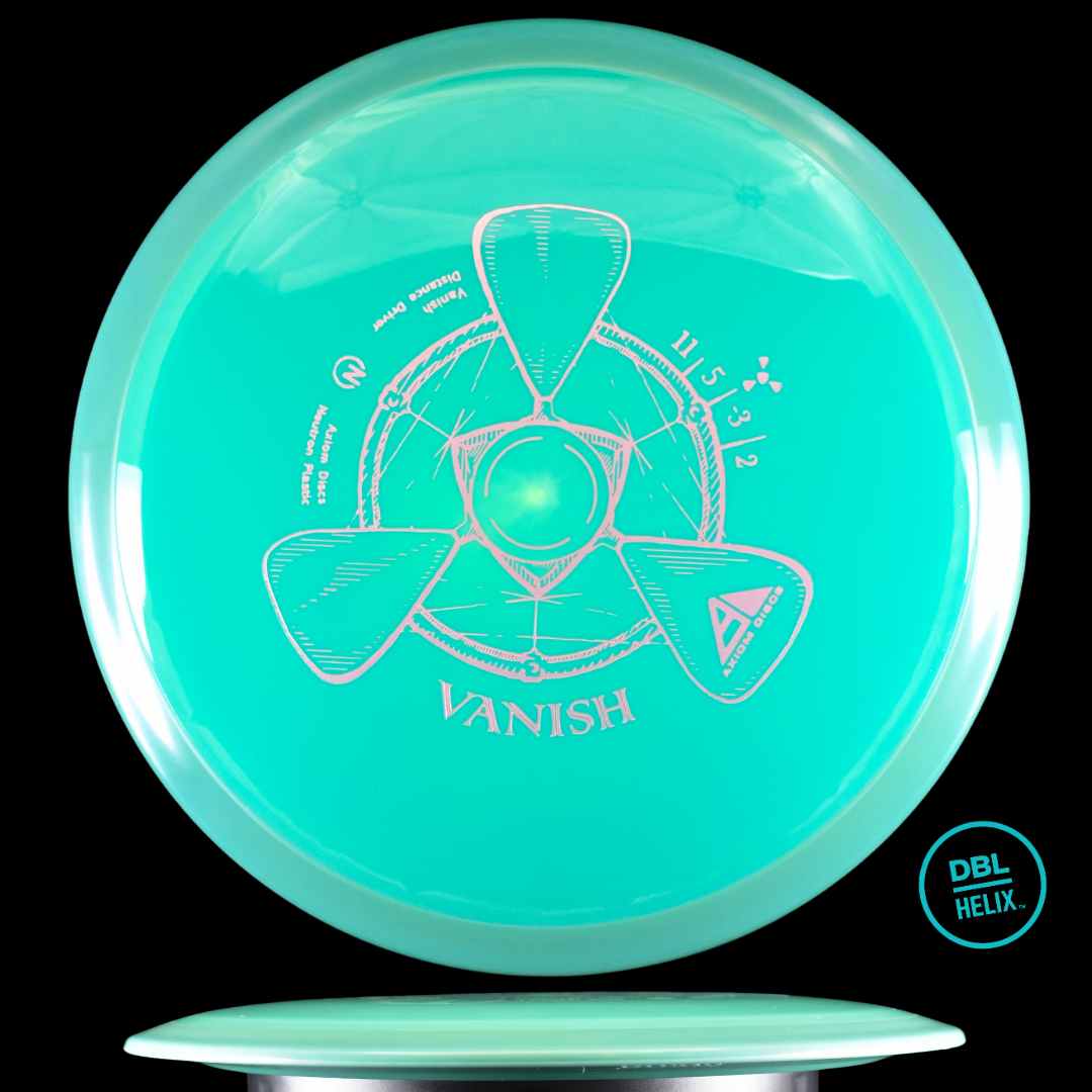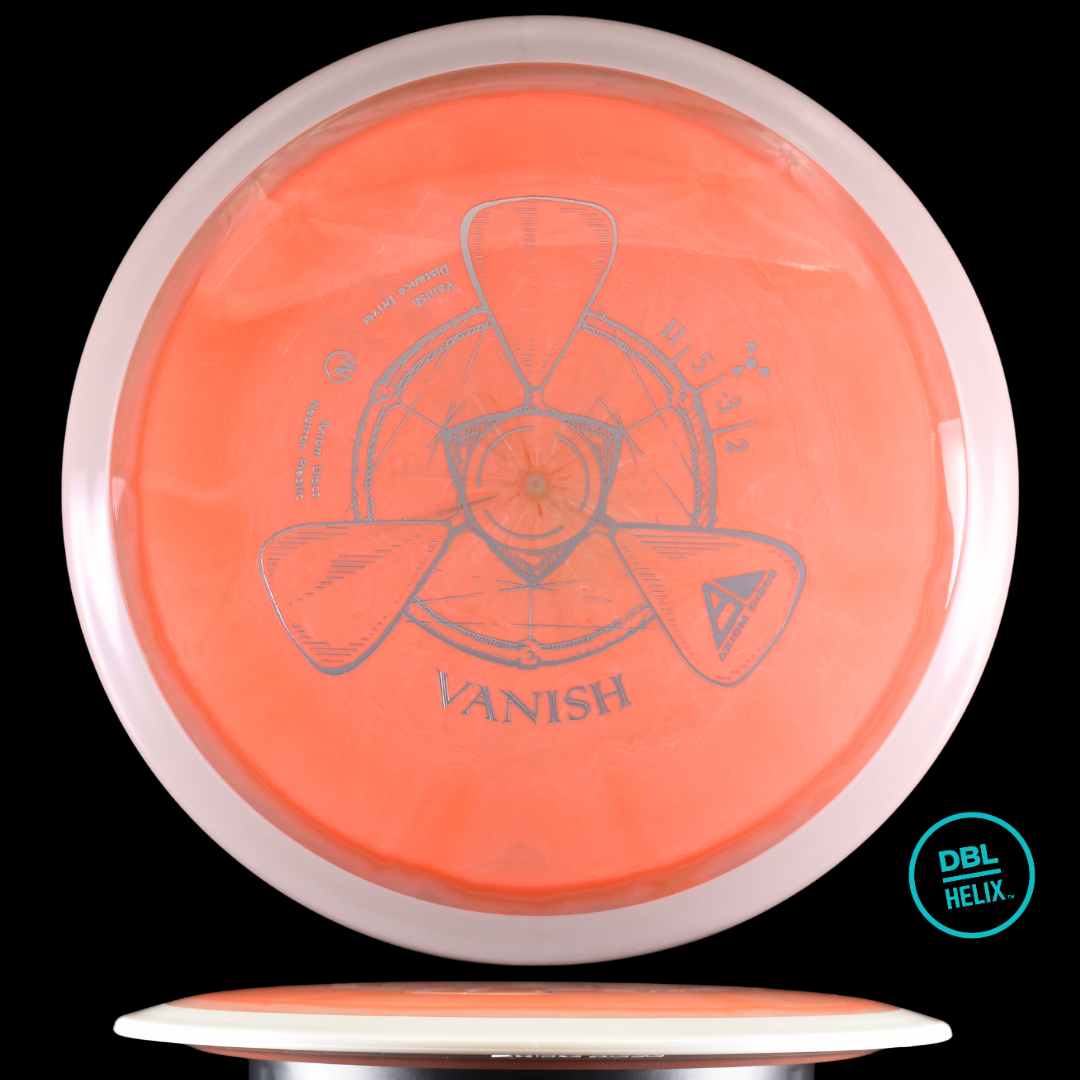 The Vanish will be straight to understable depending on the thrower and wind conditions. The Vanish’s stability profile places it near a threshold of being straight at low power or in tailwinds, and controllably understable at high power or in mild headwinds. As a 21mm class GYRO® driver, the Vanish is designed to hit a midpoint of stability between two MVP Disc Sports models, the Wave and Orbital.