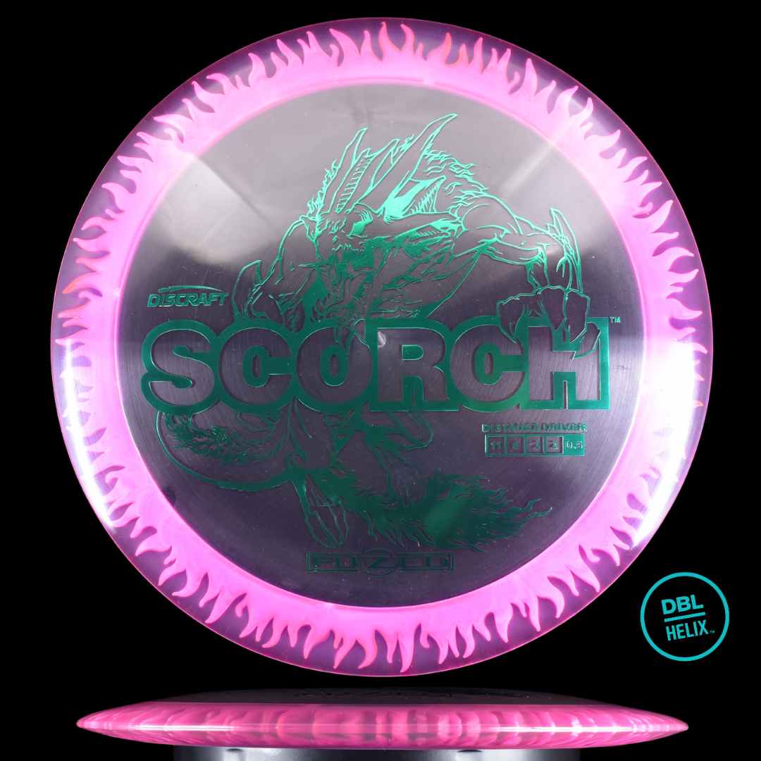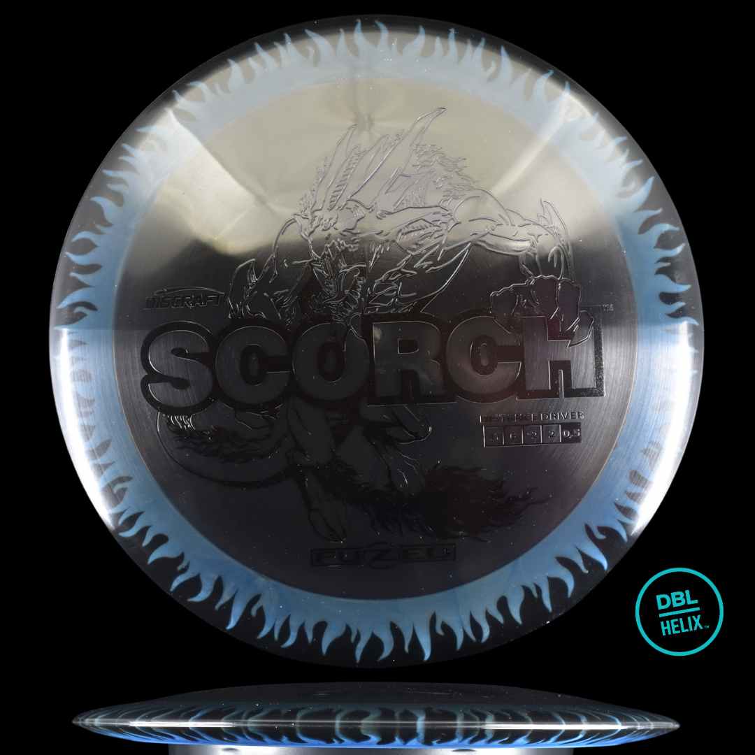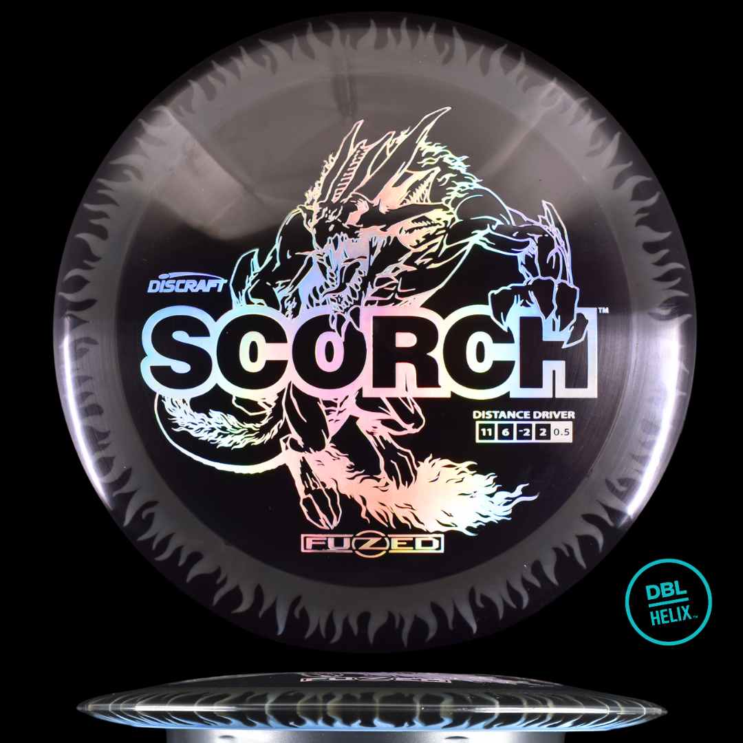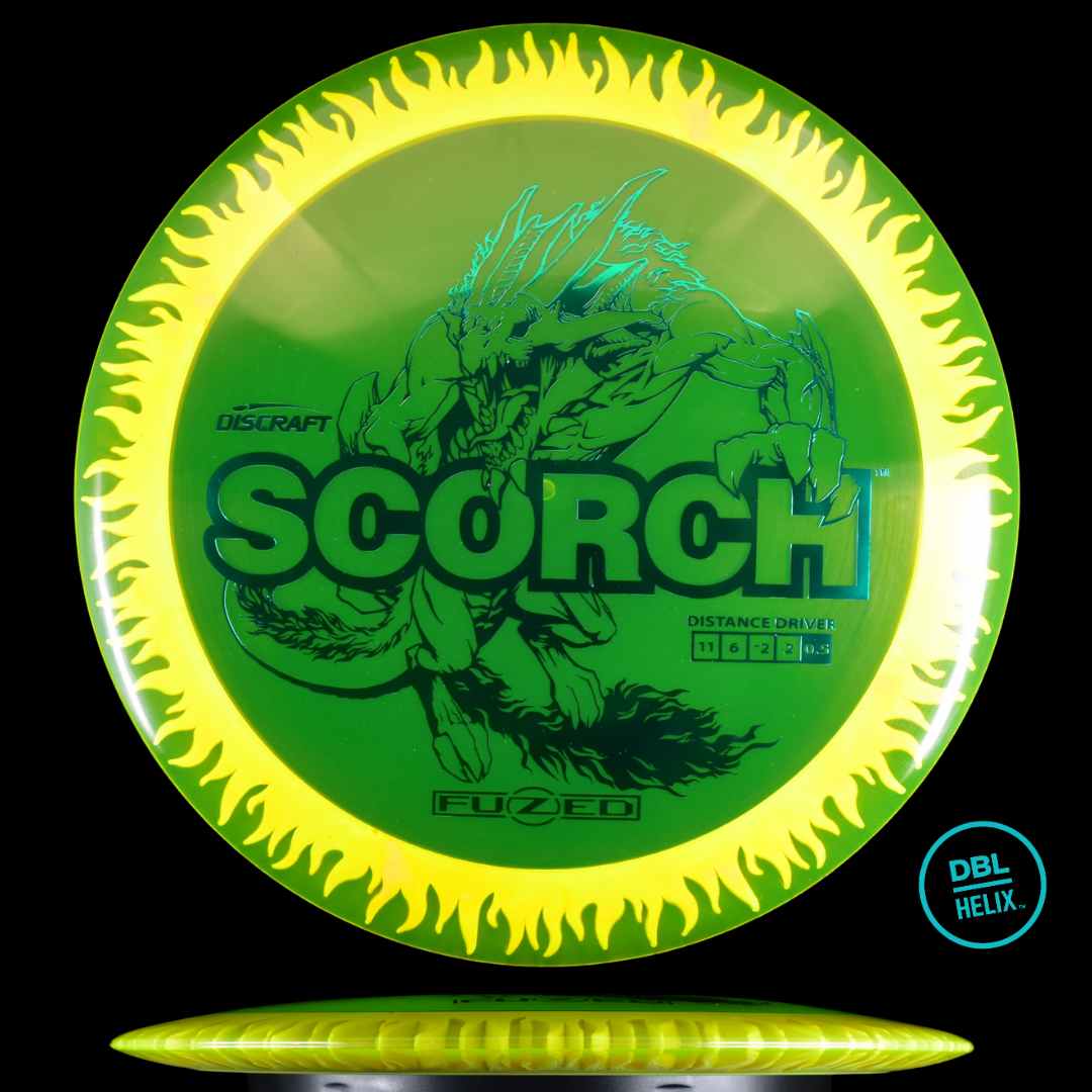 The long-awaited stock FuZed Scorch is here! Featuring our special FuZed Line process, each disc boasts a vibrant flame-burst effect on the rim. This run is notably domey, adding extra glide for those big turnover shots and hyzer flips that define the Scorch’s signature flight.