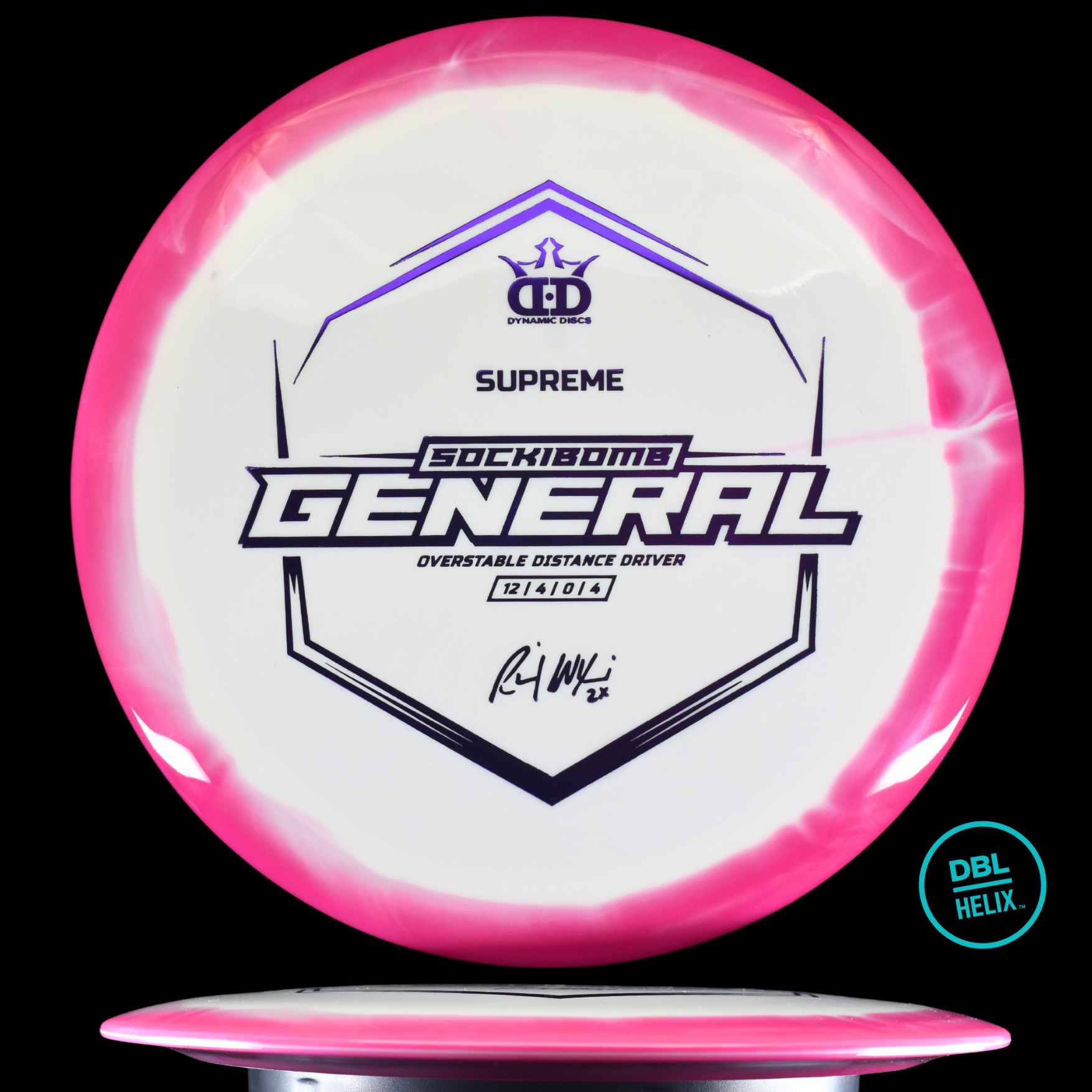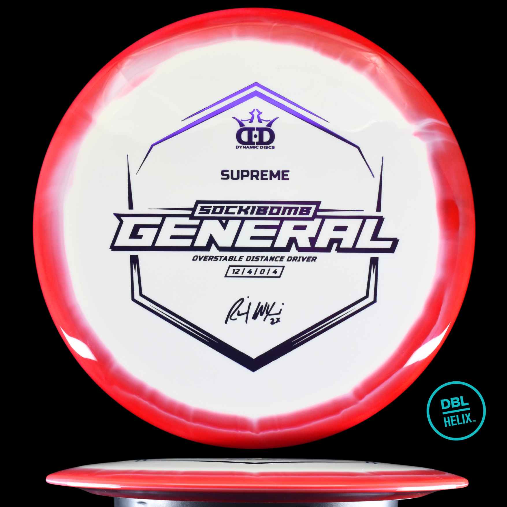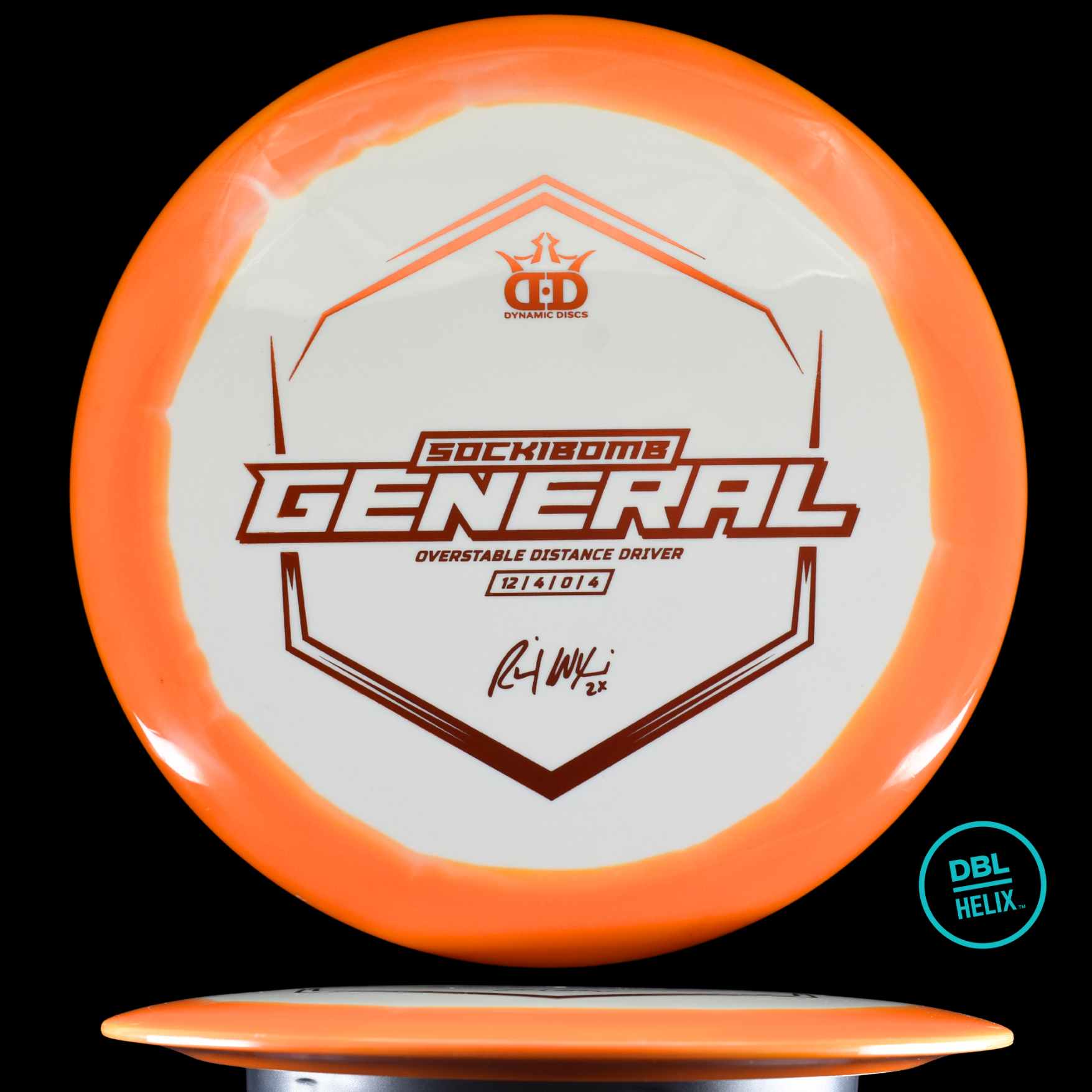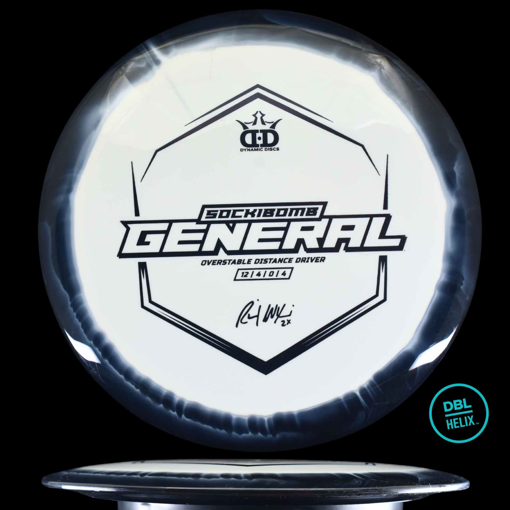The Sockibomb General from Dynamic Discs is a new overstable distance driver and the latest addition to the Supreme Series lineup. Designed in collaboration with 2x World Champion Ricky Wysocki, this commanding distance driver is tailored for maximum distance flights for those players with higher arm speeds. Those with slower arm speeds will find the General a reliable, repeatable, wind-fighting utility disc.