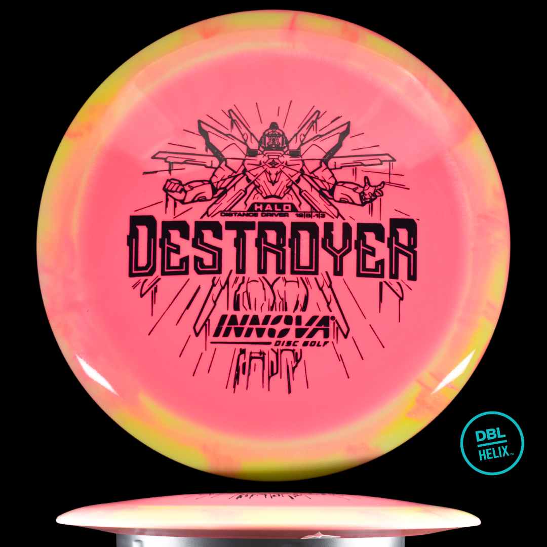 DBL Helix Test notes... its a Halo Star Destroyer, not much more to say. Its fast and overstable, made for big arms, headwinds, and forced flex shots. This is a disc that has no surprises to offer and that is why its probably the most trusted driver in the disc golf community. The lighter weight did not seem to make any difference with the stability. However, I was able to get it to consistently push farther than the max weight.