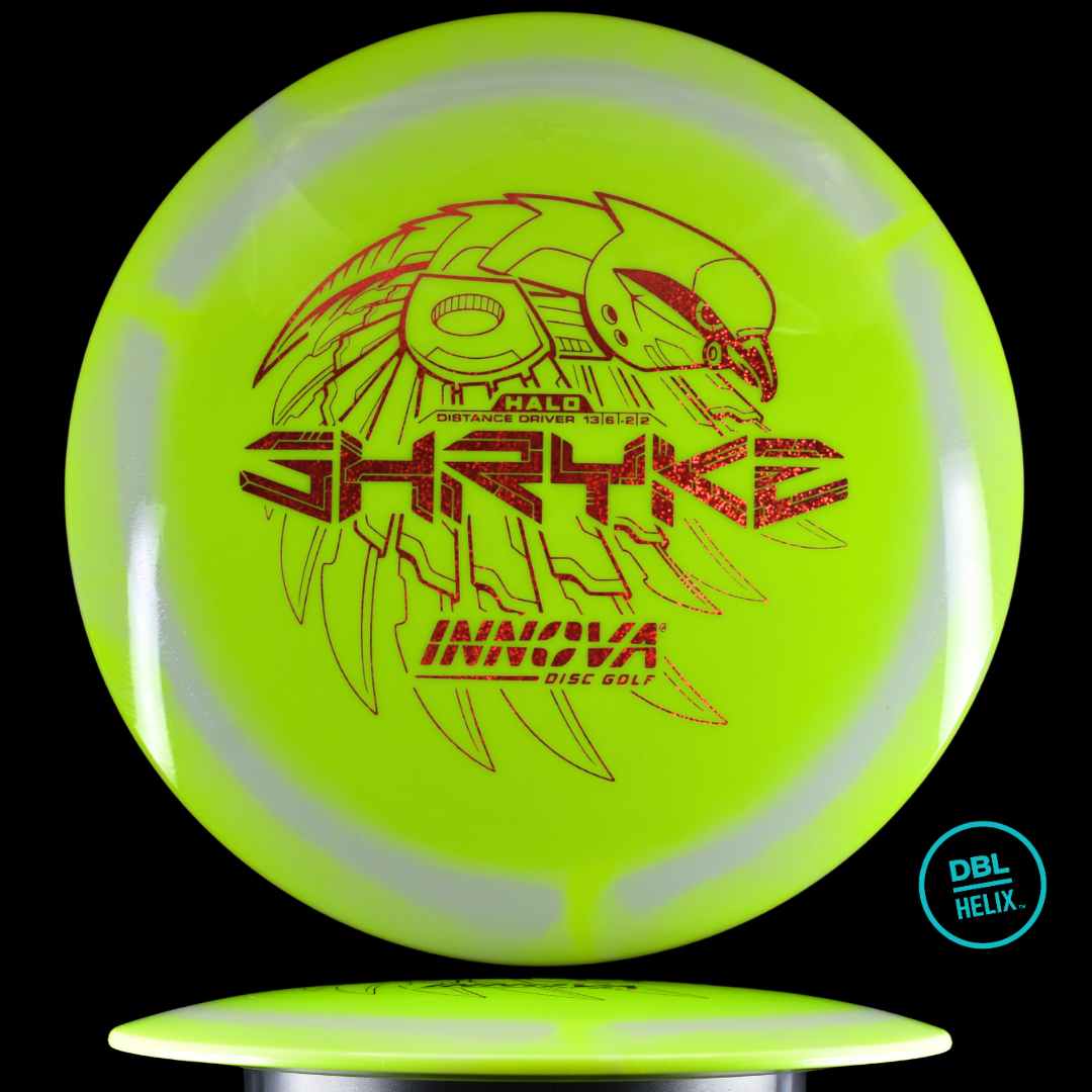 The Shryke is an easy to throw, very long range driver for a wide variety of players. A mild high speed turn puts the Shryke in glide mode, which along with its high aerodynamic speed, give it incredible distance. The low speed fade is also mild, which makes it easy to keep on the fairway. The Shryke is similar to our popular Tern but faster and slightly more high speed stable.