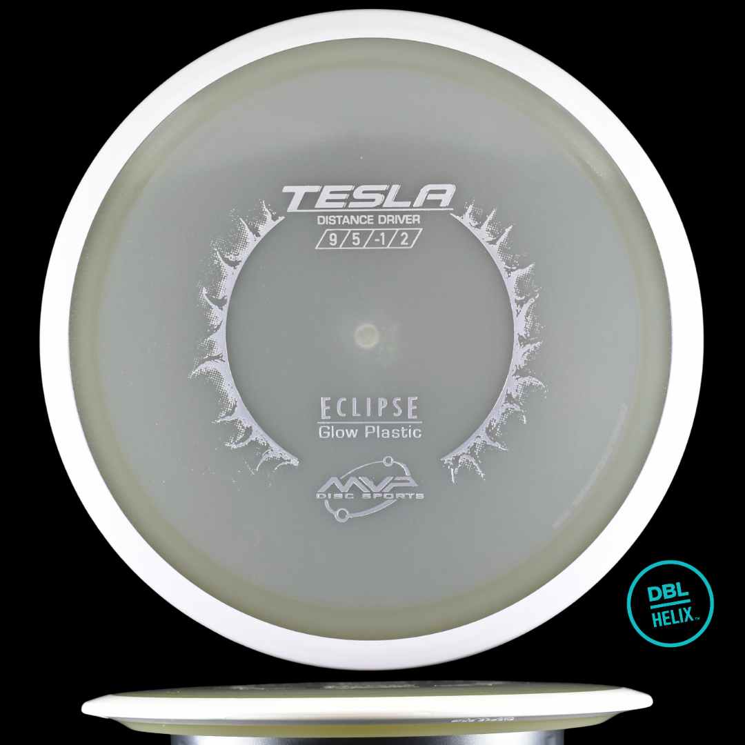 A true throwback is here - the Eclipse Tesla joins our catalog of stock offerings! Included as a rare disc to receive in the 2020 GYROpalooza Box, the Eclipse Tesla became a cult favorite that has flown under the radar for several years. Now available as a stock disc in MVP’s industry-leading Eclipse plastic, you’ll be able to keep the extremely reliable Tesla in your glow bag for years to come. This stable-overstable distance driver balances subtle turn and reliable fade, with a forward pushing finish, for a high-power bomber or headwind fighter. Discover what you've been missing by grabbing your own Eclipse Tesla today!