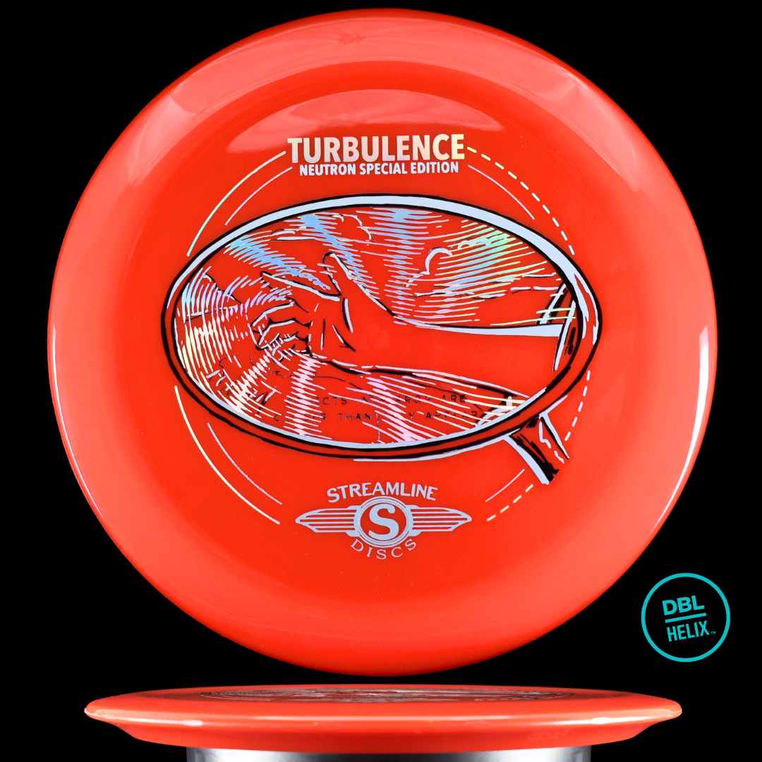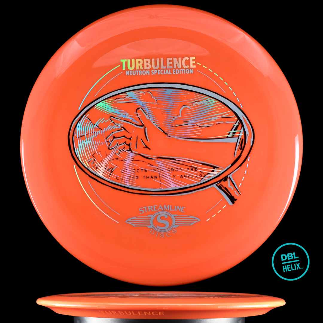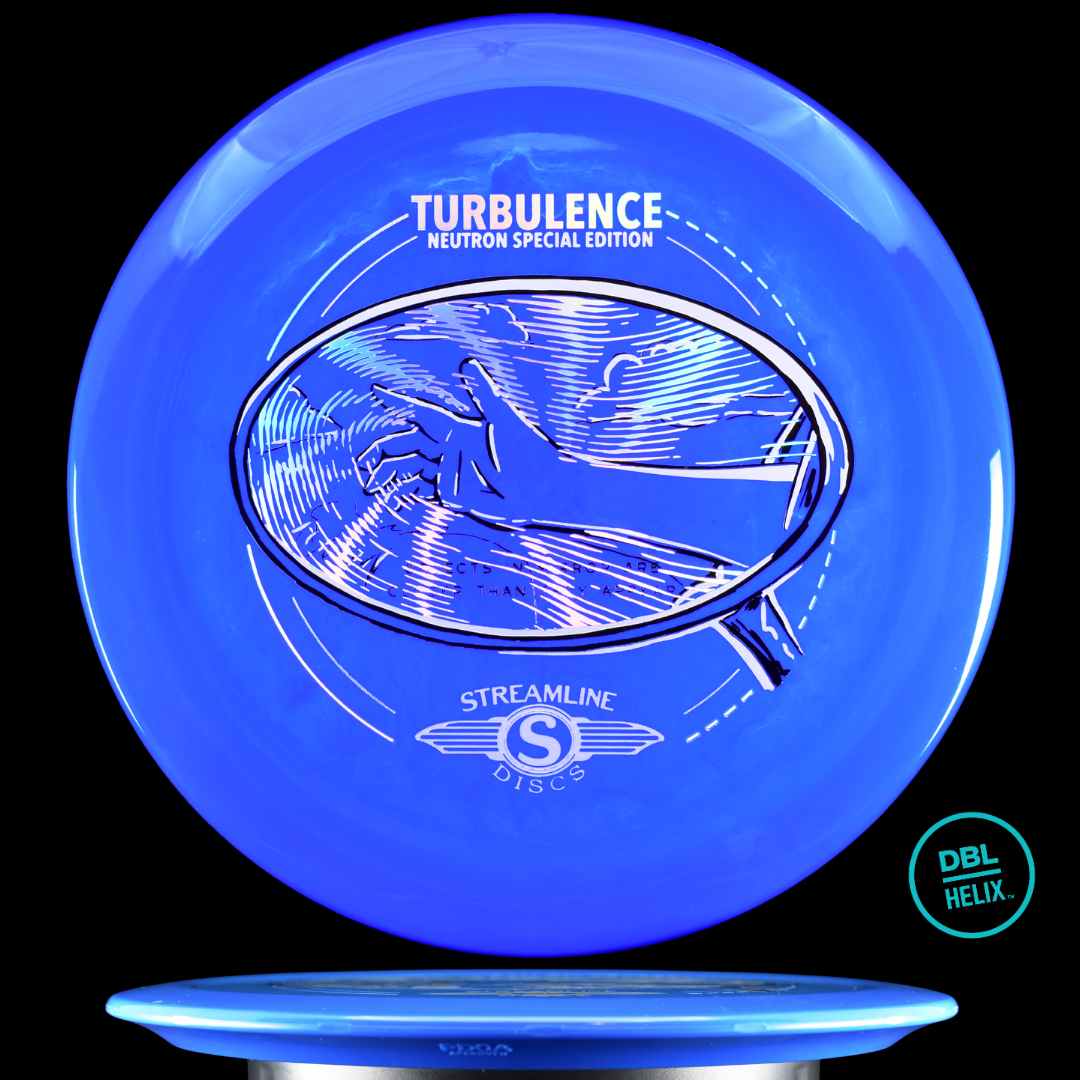 DBL Helix Test Notes... the Turbulence is a unique driver offering from Streamline that has an intentional recessed flight plate that gives the feel of a thumb track. I threw the Turbulence repeatedly alongside all the other 9 speed overstable staples including the Firebird, Felon, FD3, Captain Raptor, Stal, Spice, etc. I was hoping to find a noticeable difference in the distance the Turbulence flew compared to the others offerings to indicate that it indeed has less glide. I wasn't able to notice a consistence difference in the distance of the Turbulence but I did notice that when it starts to fade it gets to the ground quickly. With all that being said, the Turbulence is a great feeling overstable 9 speed that is unique to the market with its recessed flight plate and is priced at an absolutely unbeatable price.