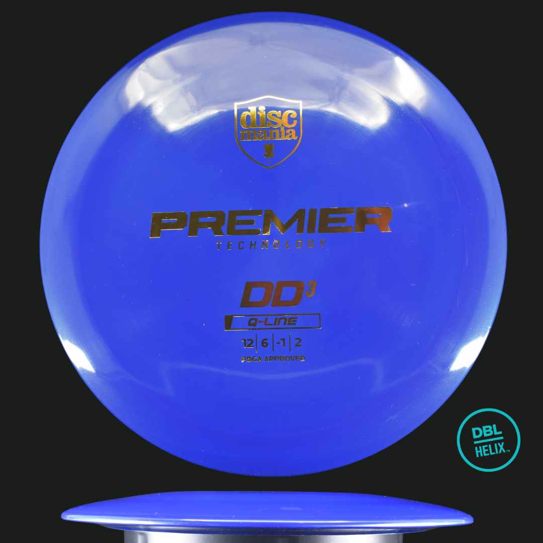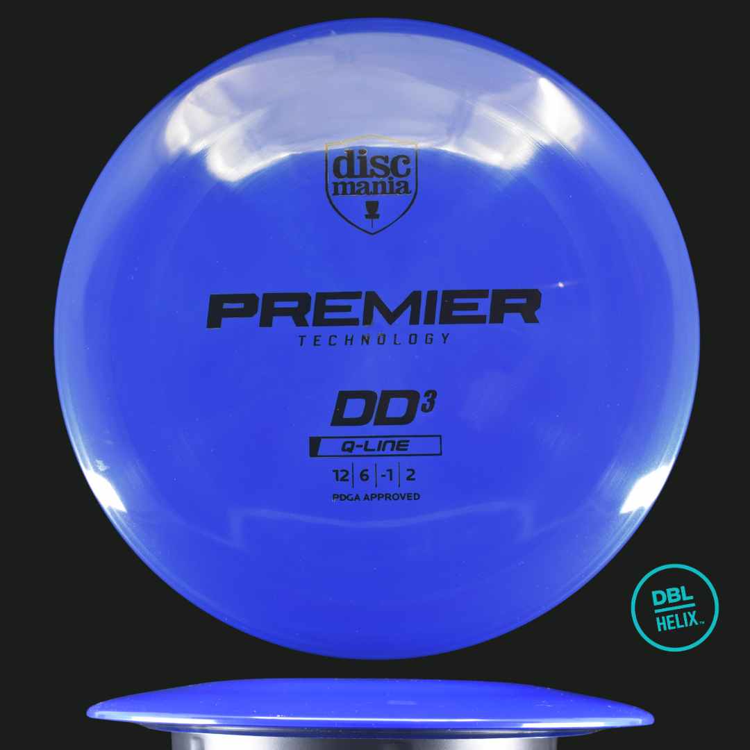 DBL Helix Test Notes... the Premier Q line DD3 is a hard disc to find fault with. The Q line plastic is noticeable diffrent in the hand. The flight plate feels almost flimsy, and is noticeably thinner than most discs. However, it still retains excellent grip and the rim is nice and stiff. With regard to the flight, the Q line DD3 likes to hold very straight for surprisingly long before reliably fading back in. For my arm speed, the Q line DD3 is not my longest flying disc as it is quite overstable, but it is my longest flying overstable headwind disc.