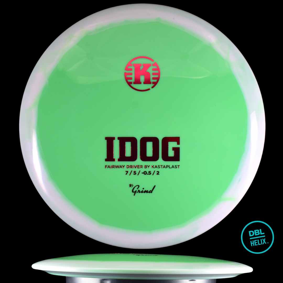 DBL Helix Test Notes... The new IDOG (translation... hard-working and persistent, industrious) is a great addition to the Kastaplast fairway driver lineup. It fills that neutral to overstable fairway slot very nicely offering a touch more stability than the Lots or Falk. With that being said, the IDOG is far from being beefy and will likely become very straight when beat-in. The rim feels nice and smooth in the hand with medium depth and as always, the K1 plastic is just incredibly buttery and premium feeling in hand. If you a Kasta-fan, but missed a stable to overstable fairway option, this disc is for you. I found the flight numbers to be very accurate for this disc.