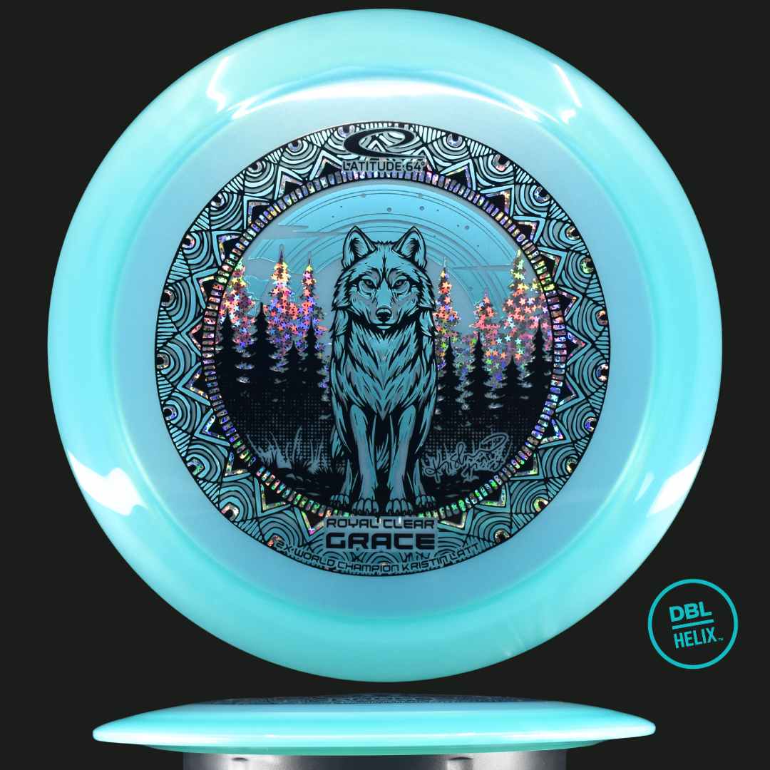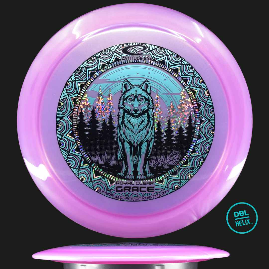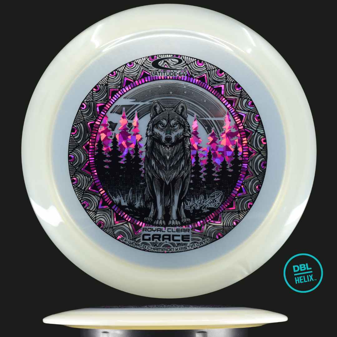 This 2026 Kristin Lätt edition is a tribute to her dominance on the world stage. The Wolf Triple Stamp design, surrounded by an intricate mandala-inspired pattern, creates a visual depth that is unmatched in disc golf. As Kristin’s go-to driver for controlled distance, the Grace performs at the highest level, throw after throw. Whether you are shaping an S-curve through a forest or bombing a straight shot across an open field, the Royal Clear Grace delivers with elegance and precision. Throw with Grace.