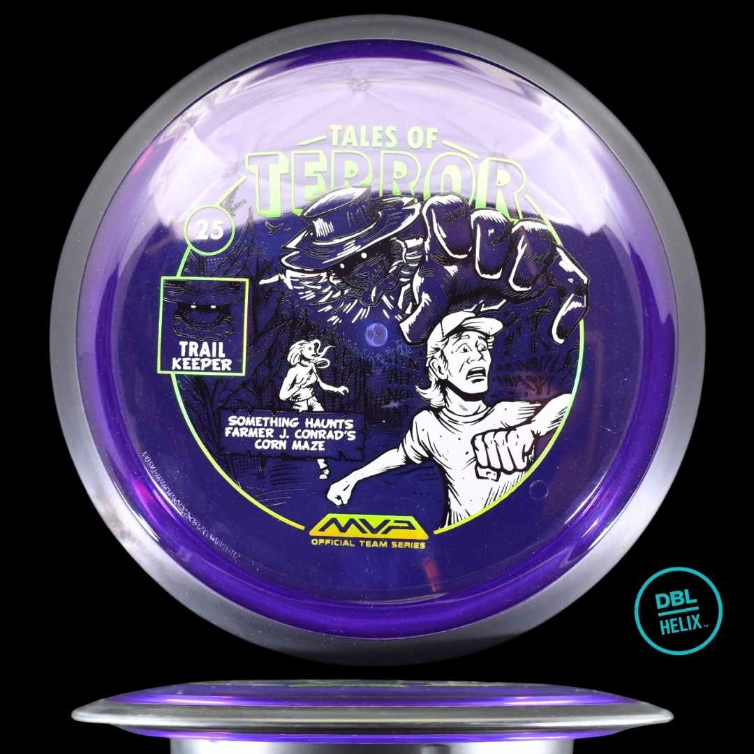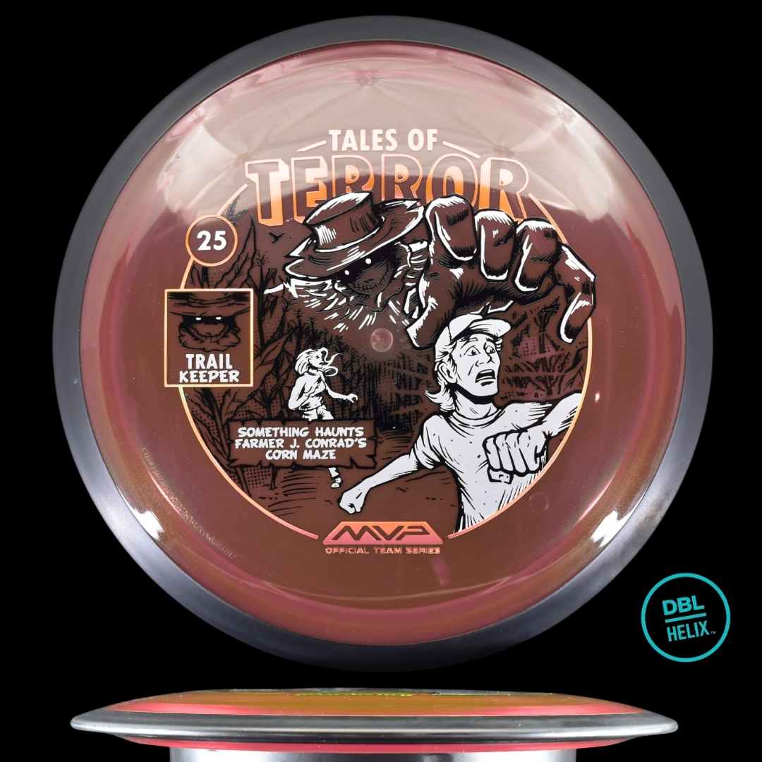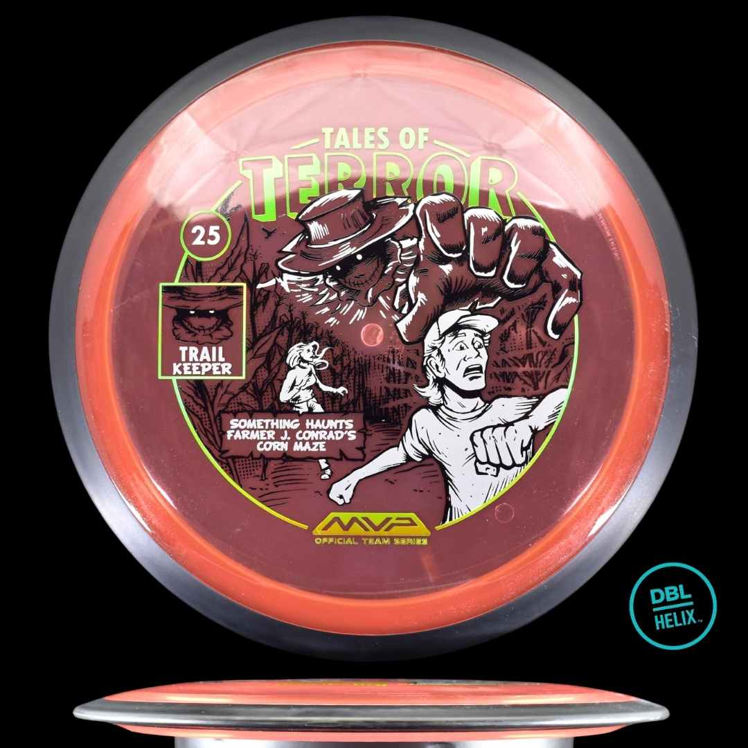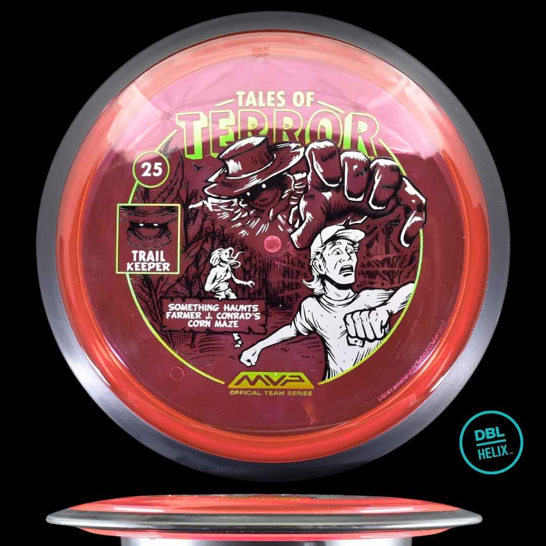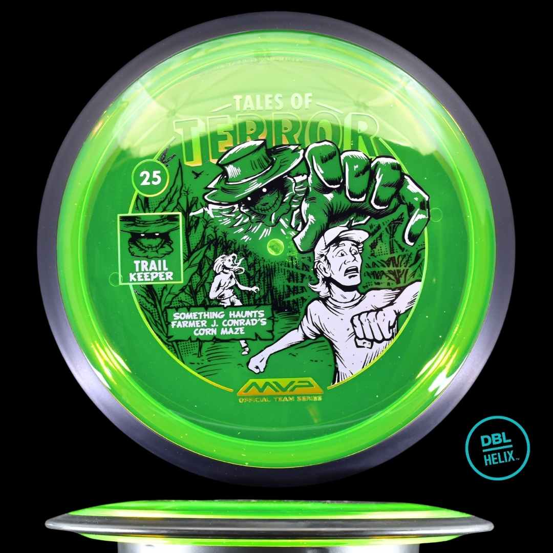 The highly requested fan favorite Proton Trail has returned! Green C Studio adorns this disc with a glimpse of the Trail Keeper haunting Conrad’s Corn Maze, a classic horror story. Excelling in hyzer-flip drives, turnovers, and straight shots, the Trail has become one of the most popular drivers in the MVP lineup that throwers of all power levels will find significant use for. You don’t have to get lost in a killer corn field to get your hands on one of these, just head over to your favorite local or online MVP dealer to get yours today!